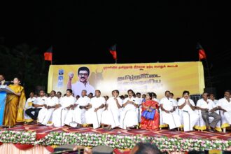 ஓரணியில் தமிழ்நாடு என்ற பெயரில் புதிய உறுப்பினர் சேர்க்கையை தி.மு.க. தொடங்கி உள்ளது. ஒரு வாக்குச்சாவடியில் குறைந்தபட்சம் 30 சதவீத வாக்காளர்களை தி.மு.க. உறுப்பினர்களாக இணைப்பதற்கு வியூகம் வகுத்துள்ளது. 2026 சட்டசபை தேர்தல் பணிகள் தொடர்பாக தி.மு.க. நிர்வாகிகளுக்கு முதலமைச்சர் மு.க.ஸ்டாலின் அறிவுத்தல்களை வழங்குகிறார்.
