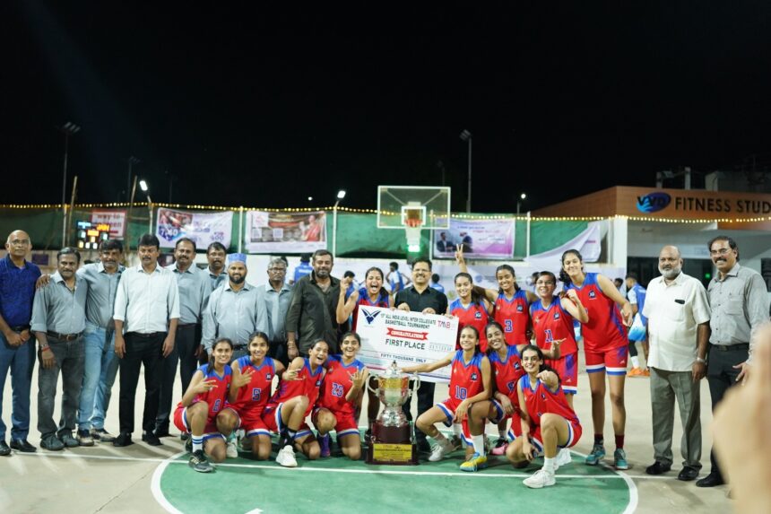 தூத்துக்குடியில் நடைபெற்ற அகில இந்திய கூடைப்பந்து போட்டியில் வெற்றி பெற்ற அணிக்கு பாிசுகள் கோப்பை வழங்கப்பட்டது.