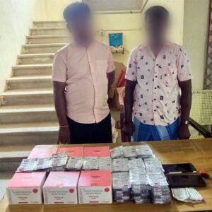 தாளமுத்துநகர் காவல் நிலைய எல்லைக்குட்பட்ட பகுதியில் போதை தரக்கூடிய ஊசிகளை சட்டவிரோதமாக விற்பனைக்காக வைத்திருந்த இருவர் கைது – 800 போதை ஊசிகள் மற்றும் ரூபாய் 11,300/- ரொக்க பணம், இருசக்கர வாகனம் ஆகியவை பறிமுதல் செய்யப்பட்டது.மாவட்ட காவல் கண்காணிப்பாளர் ஆல்பர்ட் ஜான் உத்தரவின்படி தூத்துக்குடி நகர உட்கோட்ட காவல் உதவி கண்காணிப்பாளர் டாக்டர் C. மதன் மேற்பார்வையில் தாளமுத்துநகர் காவல் நிலைய ஆய்வாளர் அருளப்பன் தலைமையில் சார்பு ஆய்வாளர் முத்துராஜா மற்றும் போலீசார் நேற்று (11.06.2025)