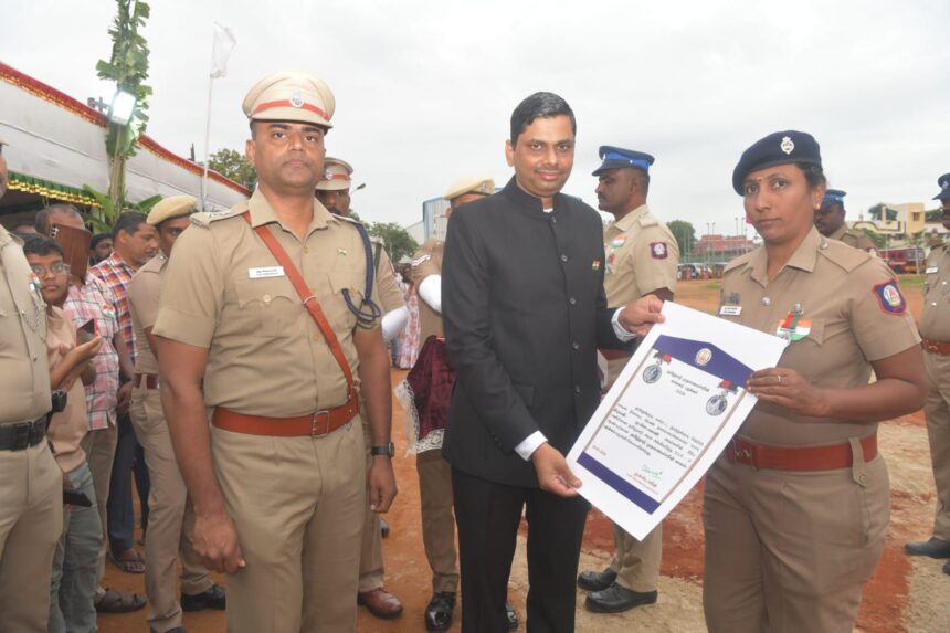 விழாவில் கலெக்டா் இளம்பகவத் காவல் துறையினரின் அணிவகுப்பு மரியாதையினை ஏற்றுக்கொண்டு சமாதானத்தை வலியுறுத்தும் விதமாக வெள்ளைப்புறாக்களை பறக்கவிட்டார். மேலும், 615 மாணவ, மாணவிகள் கலந்துகொண்ட பள்ளி மாணாக்கர்களின் பல்வேறு கலைநிகழ்ச்சிகளை பார்வையிட்டார். பின்னா் சுதந்திரத்திற்காக பாடுபட்ட தியாகிகளின் வாரிசுதாரர்களுக்கு பொன்னாடை போர்த்தி கௌரவித்தார். தொடர்ந்து காவலர்களுக்கு தமிழ்நாடு முதலமைச்சரின் காவலர் பதக்கம் 2026க்கான பதக்கம் மற்றும் சான்றிதழ்களையும், காவல்துறை மற்றும் பல்வேறு அரசு துறைகளை சேர்ந்த 440 அரசு அலுவலர்களுக்கு சிறப்பாக பணிபுரிந்தமைக்கு நற்சான்றிதழ்கள் வழங்கினார். தொடர்ந்து மாற்றுத்திறனாளிகள் நலத்துறை, மாவட்ட ஊரக வளர்ச்சி முகமை, மகளிர் மேம்பாட்டுத் திட்டம், கூட்டுறவுத்துறை, மாவட்ட ஆதிதிராவிடர் மற்றும் பழங்குடியினர் நலத்துறை, மாவட்ட பிற்படுத்தப்பட்டோர் மற்றும் சிறுபான்மையினர் நலத்துறை, வேளாண்மை பொறியியல் துறை, மாவட்ட தொழில் மையம், தாட்கோ உள்ளிட்ட துறைகளின் சார்பாக 38 பயனாளிகளுக்கு ரூ.2 கோடியே 13 இலட்சத்து 25 ஆயிரத்து 922 மதிப்பிலான நலத்திட்ட உதவிகளை வழங்கினார்.