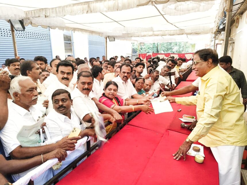 திமுக தலைவரும் தமிழக முதலமைச்சருமான மு.க.ஸ்டாலின் உத்தரவிற்கிணங்க தமிழகம் முழுவதும் 234 ெதாகுதிகளில் போட்டியிட விரும்பும் வேட்பாளர்கள் சென்னை அண்ண அறிவாலயத்தில் விருப்பமனு வழங்க வேண்டும் என்று பொதுச்செயலாளரும் அமைச்சருமான துரைமுருகன் அறிவித்திருந்தாா். அதன்படி வடக்கு மாவட்ட திமுக செயலாளரும் சமூகநலன் மற்றும் மகளிா் உாிமைத்துறை அமைச்சர் கீதாஜீவன் தூத்துக்குடி தொகுதியில் போட்டியிட அண்ணா அறிவாலயத்தில் விருப்பமனு வழங்கினாா்.