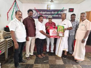 தூத்துக்குடி பிரஸ் கிளப்பில் பொங்கல் விழா கோலாகல கொண்டாட்டம் : வேஷ்டி, சட்டை, பொங்கல் பானை, அச்சுவெல்லம்,, பச்சரிசி, காய்கறிகள் கரும்பு உள்ளிட்ட 32 வகையான பொங்கல் தொகுப்புகள் வழங்கப்பட்டது. பத்திரிகையாளர்கள் மகிழ்ச்சி!!!