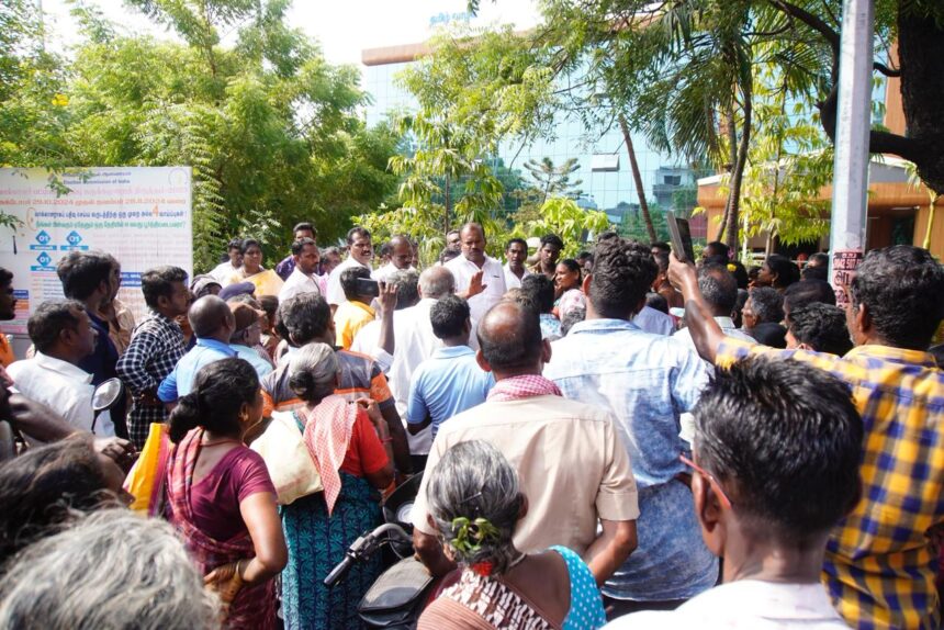 தூத்துக்குடி மாநகராட்சி முழுவதும் உள்ள 60 வார்டுகளிலும் அவர் லேண்ட் நிறுவனத்தின் கீழ் 1500 தூய்மை பணியாளர்கள் பணியாற்றி வருகின்றனர். தூய்மை பணியாளர்களுக்கு தீபாவளி போனஸ் கேட்டு திங்கட்கிழமை மாநகராட்சி அலுவலகம் முன்பு தூய்மை பணியாளர்கள் முற்றுகை ேபாராட்டம் நடத்தி மாநகராட்சி ஆணையர் ப்ாியங்காவிடம் மனு அளிக்க முடிவு செய்திருந்தனர். இதனயைடுத்து மாநகராட்சி அலுவலகத்திற்கு வந்த மேயர் ஜெகன் பொியசாமி அதிகாரிகளிடம் விபரங்களை கேட்டறிந்தார். காலையிலிருந்து தூய்மை பணியாளர்கள் அலுவலகம் முன்பு வெயிலில் இருந்து வருவதாகவும் தீபாவளி போனஸ் 5000 கேட்டு போராட்ட களத்தில் இருக்கின்றனா் என்று மேயர் ஜெகனிடம் அதிகாரிகள் தெரிவித்தனர். இதனையடுத்து வெயிலில் தூய்மை பணியாளர்கள் இருக்கக் கூடாது என்ற எண்ணத்தில் தனது அறையிலிருந்து வெளியே வந்து காத்திருந்த தூய்மை பணியாளர்களிடம் விபரங்களைக் கேட்டு மேயர் ஜெகன் பொியசாமி உடனடியாக மாநகராட்சி தூய்மை பணி ஒப்பந்ததாரர் அவர் லேண்ட் நிறுவனத்திடம் தொடர்பு கொண்டு பேசி தூய்மை பணியாளர்கள் மத்தியில் நீங்கள் எதிர்பார்த்த தீபாவளி போனஸ் 3000 ரூபாய் உங்களுக்கு வழங்கப்படும். இந்த நிறுவனம் ஏதாவது பிரச்சனை செய்தால் உங்களுடன் தான் நான் இருப்பேன் என்னிடம் நீங்கள் எந்த குறைகள் என்றாலும் எப்போதும் முறையிடலாம் உங்களை நான் வந்து சந்திப்பேன் என்று தூய்மை பணியாளர்களிடம் கூறினார். இதனையடுத்து போராட்டத்தில் ஈடுபட்டு வந்த தூய்மை பணியாளர்கள் உறுதி மொழியை ஏற்றுக்கொண்டு போராட்டத்திலிருந்து கலைந்து சென்றனர் ஆணையரை சந்தித்து தீபாவளி போனஸ் கேட்டு வந்த தூய்மை பணியாளர்களுக்கு மேயர் ஜெகன் பொியசாமி தூய்மை பணியாளர்களின் நேரில் சந்தித்து அவர்களுடைய கோாிக்கையை தீபாவளி போனஸை வாங்கி கொடுத்துள்ளார் என்பது குறிப்பிடத்தக்கது. இதனையடுத்து தூய்மை பணியாளா்கள் பணிகளை மேற்கொண்டு வருகின்றனா்.