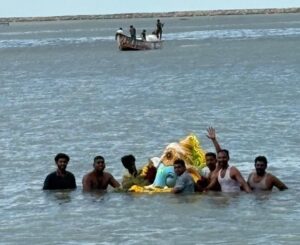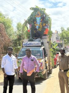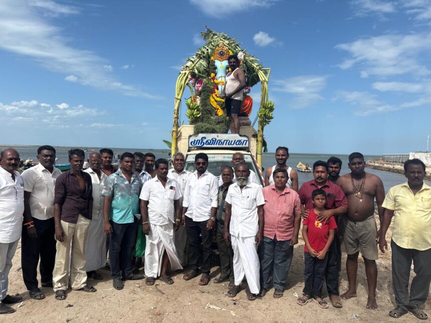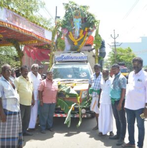 தூத்துக்குடி மாநகர பழைய இரும்பு மாா்க்கெட் வியாபாாிகள் சங்கம் சாா்பில் 29 ம்ஆண்டு வியாபார அபிவிருத்தி விநாயகா் சிலை சதூா்த்தி விழா 27ம் தேதி மாா்க்கெட் பகுதியில் அமைக்கப்பட்டு தினசாி சிறப்பு ஹோம பூஜைகளுடன் 28ம் தேதி அன்னதானம் நடைபெற்று வெள்ளியன்று மாா்க்கெட் பகுதியிலிருந்து முக்கிய வீதிகள் வழியாக வானவேடிக்கை மேளதாளங்கள் முழங்க எடுத்துச்சென்று வடபாகம் காவல்நிலையம் பின்புறம் உள்ள கடற்கரை பகுதியில் விஜா்ஜனம் செய்யப்பட்டது.
