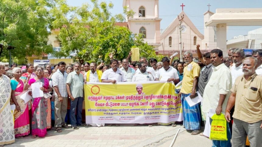 இதில் அவர்கள் தெரிவித்ததாவது: தூத்துக்குடி தாலுகாவிற்கு உட்பட்ட முடி திருத்தும் தொழிலாளர்கள் மருத்துவ சமுதாய மக்களுக்கு இலவச வீட்டுமனை பட்டா கேட்டு அரசுக்கும் தூத்துக்குடி பாராளுமன்ற உறுப்பினர் மற்றும் மாவட்ட ஆட்சித் தலைவர் ஆகியோரிடம் பலமுறை மனு அளித்தும் எந்தவித நடவடிக்கையும் எடுக்கப்படவில்லை. மேலும் மாண்புமிகு தமிழக முதல்வர் அவர்களுக்கு கடந்த 09.10.2023 அன்று இலவச வீட்டுமனை பட்டா கேட்டு மனு அளித்தோம். அதன்பேரில் தூத்துக்குடி மாவட்ட பிற்படுத்தப்பட்டோர் மற்றும் சிறுபாண்மை நல அலுவலர் 23.11.2023 அன்று தூத்துக்குடி சப்-கலெக்டர் அவர்களுக்கு அனுப்பிய தபாலில் இதன்மீது நடவடிக்கை எடுக்க சொன்னார்கள். ஆனால் சப்-கலெக்டர் அவர்கள் இலவச வீட்டு மனை பட்டா பற்றி இதுவரை எந்தவித நடவடிக்கையும் எடுக்கவில்லை. 26.02.2025 அன்று மீண்டும் மாண்புமிகு தமிழக முதல்வர் அவர்களுக்கு மனு அளித்தோம். அந்த மனு ஏற்கப்பட்டது என்ற மெசேஜ் வந்தது. முதலமைச்சர் தனிப்பிரிவிற்கு செல்போன் மூலம் தொடர்பு கொண்ட போது தூத்துக்குடி தாசில்தார் நடவடிக்கை எடுக்க அனுப்பப்பட்டுள்ளது என்று தகவல் சொன்னார்கள். ஆகவே, தூத்துக்குடி சப்-கலெக்டர் மற்றும் தூத்துக்குடி தாசில்தார் ஆகியோர் உடனடியாக நடவடிக்கை எடுக்க வலியுறுத்தியும் தமிழக அரசின் கவனத்தை ஈர்க்கும் வகையில் தூத்துக்குடி வட்டார தாலுகா அலுவலக வளாகத்தில் முடி திருத்தும் அழகு கலை தொழிலாளர்கள் நலச் சங்கம் மருத்துவர் சமுதாய பேரவை ஆகியவை சார்பில் மனு கொடுக்கும் போராட்டம் நடந்தது. இதில் ஆண்கள், பெண்கள் என சுமார் 500-க்கும் மேற்பட்டோர் பங்கேற்றனர். கடந்த 10 ஆண்டுகளாக தாங்கள் இலவச வீட்டுமனை பட்டா கேட்டு அரசிற்கு மனு கொடுத்து வருவதாகவும், வருகிற 2026 சட்டமன்ற தேர்தலுக்கு முன்பாக முடி திருத்தும் அழகு கலை தொழிலாளர்கள் மற்றும் மருத்துவர் சமுதாய மக்களுக்கு இலவச வீட்டுமனை பட்டா வழங்க இந்த அரசு முன்வர வேண்டும் எனவும் தெரிவித்தனர்.