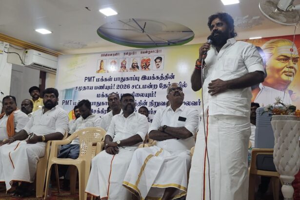 பிஎம்டி மக்கள் பாதுகாப்பு இயக்கத்தின் சமுதாய பணியும், 2026 சட்டமன்ற தேர்தலில் மக்களின் மனநிலையும் குறித்து மாநில தென்மண்டல, மாவட்ட நிர்வாகிகள் கலந்துரையாடல், அரசியல் கலந்தாய்வு திருநெல்வேலியில் தனியார் மஹாலில் வைத்து நடைபெற்றது. மாநில தலைவர் இசக்கிராஜா தேவர் கலந்துரையாடலின் போது…